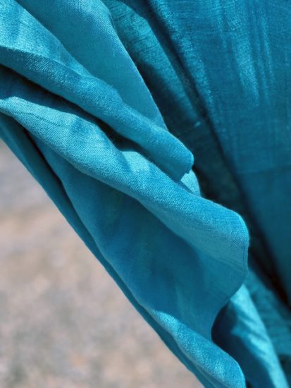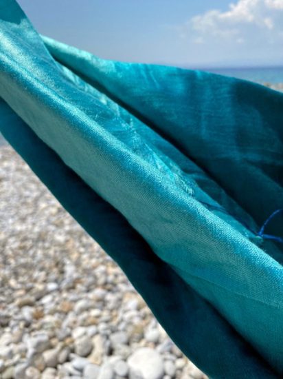 Und der Schal hatte die Farbe des Meeres: blau-türkis-grün.