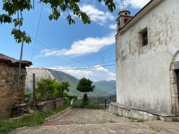 Die Kirche mit ihrer grauen vom Wetter gezeichneten Wand ragt hoch an meiner rechten Seite auf – so hoch, dass das Türmchen mit Glocke und Kreuz kaum wahrnehmbar ist.
