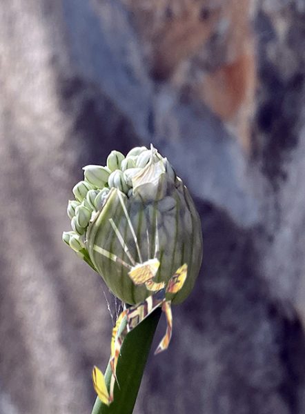 Merkwürdig eigentlich: Woher haben Kinder das bloß? Sind vielleicht die Erwachsenen schuld, die ständig an ihnen herumzupfen, herumerziehen und herumschnippeln, um Wachstum und Reifeprozess zu dirigieren, anstatt einfach wohlwollend zuzuschauen, wie sich alles schön entwickelt? „Ganz von allein, liebe Dora, wird sich dies Zwiebelköpfchen öffnen“, belehre ich Dora. „Es braucht keine Nachhilfe. Wenn es so weit ist, gucken wir beide zu, wie diese vielen Blütenknospen sich auseinanderfalten, um die Himmelskugel mit all ihren Sternen nachzubilden.“