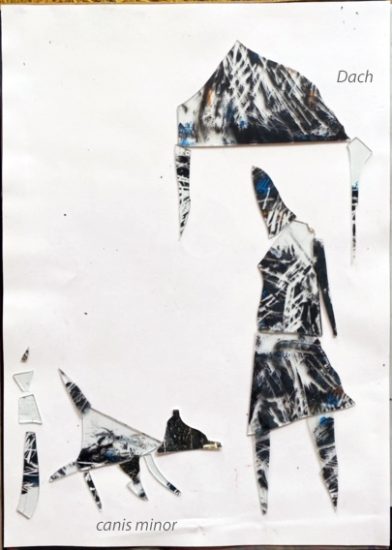 Der himmlische Große Hund (Canis maior) hat seine Herrschaft abgegeben. Während er seine angestauten Wassermassen auf die trockene Erde niederprasseln lässt und Mensch Schutz unter einem Dach sucht, hebt das irdische Hündchen (Canis minor) fröhlich sein Bein am frisch aufsprießenden Grün.