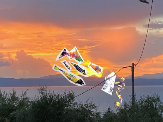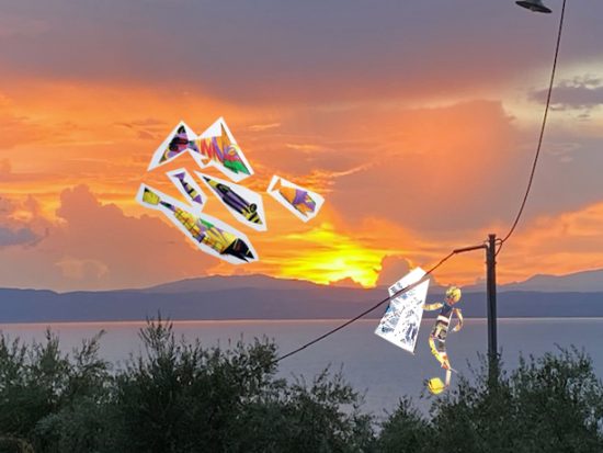 Es scheint zu klappen. Aus dem feurigen Abendhimmel schwimmt ein Schwarm Fische herbei, kommt näher und näher, um sich im Spiegel zu betrachten….