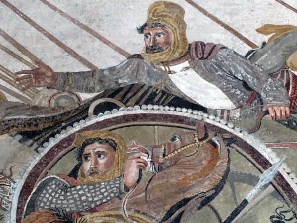 „Alexanderschlacht“. Mosaik, Pompeji, ca. 150–100 v. Chr., vermutlich nach einer Vorlage aus dem 4. Jahrhundert. Aufgenommen im Archäologischen Nationalmuseum Neapel, 2019.