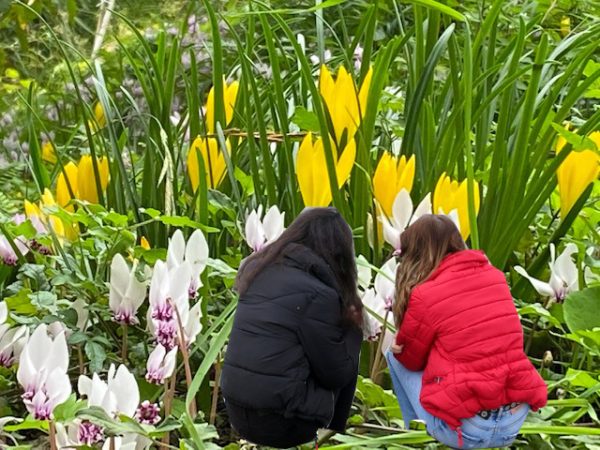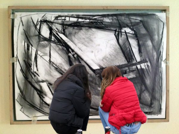 Unterhaltung vor einem Bild (Kohlezeichnung G.K.)