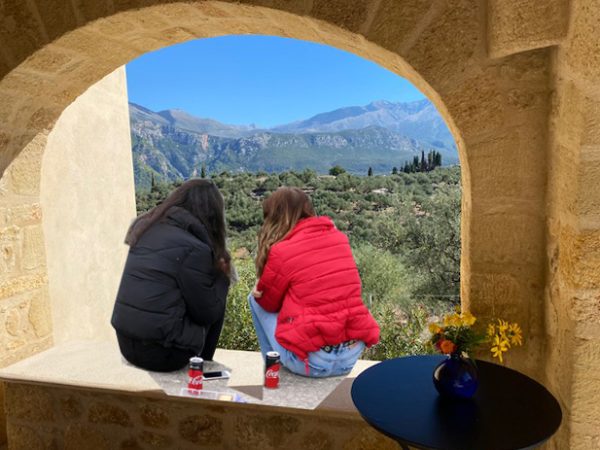 Bevor ich die beiden jungen Frauen deines Foto, liebe Myriade (das mir übrigens wegen seiner schlichten Aussagekraft sehr gefällt – Marion brachte es hier auf den Punkt), vor dein Gemälde platzierte, ließ ich sie an verschiedene andere Orte reisen. Das war schwieriger, als ich gedacht hatte, denn die beiden scheinen dort, wo du sie fotografiert hast, wirklich „an ihrem Patz“ gewesen zu sein. Dennoch vorsuchte ich es. Es ist ein bisschen wie Kulissenschieben: gleiche Darsteller, andere Szenerie und Ästhetik, neue Impulse für neue Geschichten.