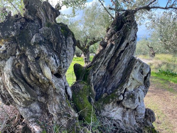 In alten Olivenhainen herumzuspazieren kann bedeuten, mit vielen urigen Bäumen ins Gespräch zu kommen. Das tue ich gelegentlich mit großen Vergnügen. Zugegeben: Hauptsächlich rede ich, die Bäume sind zu alt und ehrwürdig, um mit meinem Geschwätz mitzuhalten. Aber manchmal kann ich doch den einen und anderen Spruch auffangen. Diese Alte brummelte heute morgen, als ich vorbeieilte: „Eile mit Weile“.