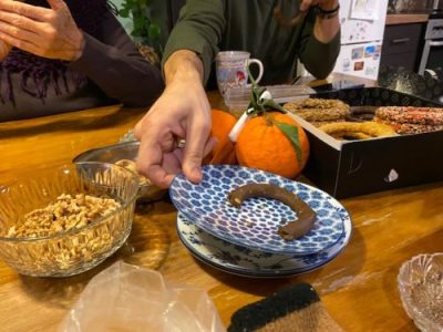 Gesichter darf man nicht mehr so ohne weiteres veröffentlichen (ich finde das durchaus richtig, aber für einen Fotografen bedauerlich), Hände aber wohl. Und so nahm ich beim Treffen unserer Gruppe die sprechenden Hände einiger Teilnehmerinnen auf. Dass es auf dem Tisch auch Kekse und Obst gibt und die Hände zugreifen, versteht sich. Denn eine Teilnehmerin ist Bäckerin, eine andere Bäuerin. Und die anderen? Nun, es sind Griechinnen, und selbstverständlich bringen sie immer irgendetwas zu den Treffen mit. Wie ich sie liebe, diese Hände!