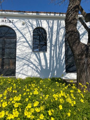 Auf dem ersten Foto wird der Rasen von einem eckigen Schatten abgedunkelt. Den warf ein Kirchlein, das, von Baumschatten verziert, mein Auge nicht minder erfreute.