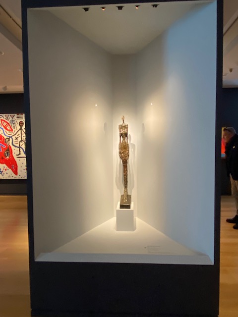 In späteren Jahren habe ich sehr vieles von Giacometti gesehen, habe auch seine Malerei kennen und lieben gelernt. Im Goulandri-Museum begegnete ich nun wieder einer seiner hohen dünnen Frauengestalten. Das Museum hat sich eine, wie ich finde, intelligente Lösung einfallen lassen, um die Skulptur von den bunten Exponaten dahinter zu isolieren und eine Art heiligen Raum der Stille zu schaffen.
