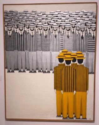 Die „ανθρωπακια“ (Menschlein) von Yannis Gaitis (1923-1984) sind aus der griechischen Kunstwelt nicht mehr wegzudenken. Ich kenne sie wie vermutlich jeder hier, sie sind unglaublich eingängig und populär. Gestern sah ich sie über drei Stockwerke der Theoharakis-Stiftung (nahe Verfassungsplatz) in einer Ausstellung, die den Weg des Künstlers nachzeichnet bis hin zu diesem Motiv, das er 1968, inspiriert wohl von der Militärdiktatur, erfand.