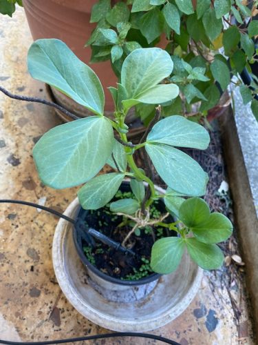 Abschied nahm ich auch von meiner Saubohne, die nun schon zu einer prächtigen, mehrfach verzweigten Pflanze herangewachsen ist. Einen weiteren Umzug wollte ich ihr nicht zumuten und hoffe nun, dass die Gießanlage funktioniert und ihr nichts fehlt, auch wenn ich nicht nach dem Rechten sehen kann.