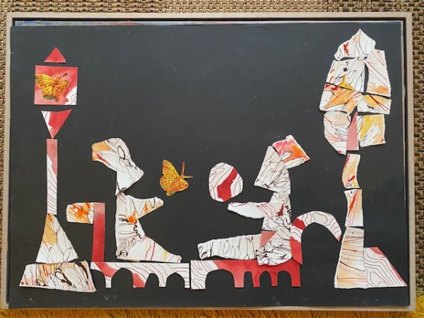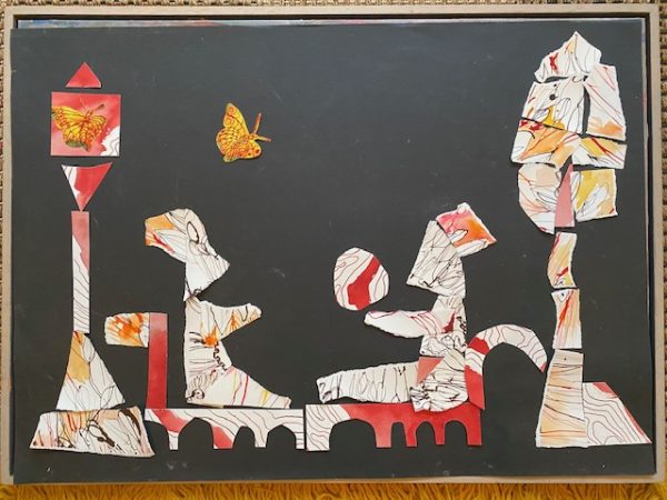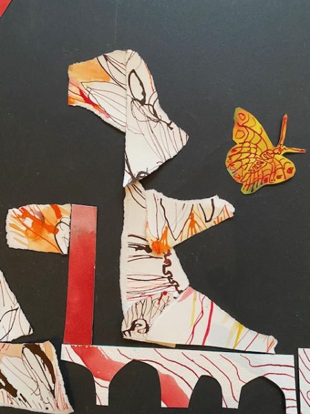 Da gibts doch nur eins: noch ein Bild mit Susannes schönen rot-gold-farbigen Schnipseln legen!