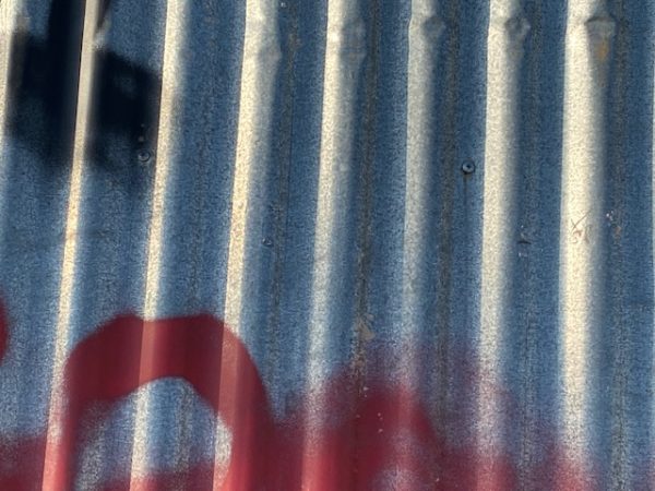 Schön sind sie ja nicht, diese Wellblech-Absperrungen vor ewigen Baustellen. Die Eigentümer sichern damit ihr Gelände, damit niemand in die Baugrube, die langsam von Unkraut überwuchert wird, hineinfällt. Jugendliche finden freie Flächen, um ihre Farbspuren drauf zu hinterlassen: Namenszüge, Fußballvereins-Logos, Anarcho-A’s im Kreis oder andere Kritzeleien.
