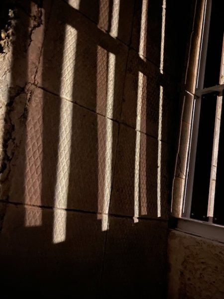 und ein Bauzaun malte ein sehenswertes Streifenmuster auf den Gehweg.