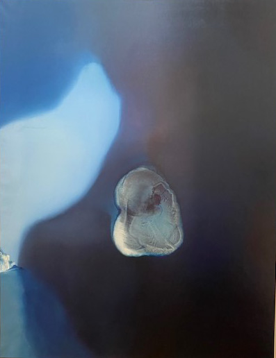 An einen Vogel dachte ich auch bei diesem sehr großen und eindrucksvollen Gemälde „Blue“ (leider habe ich den Namen der Künstlerin nicht notiert)