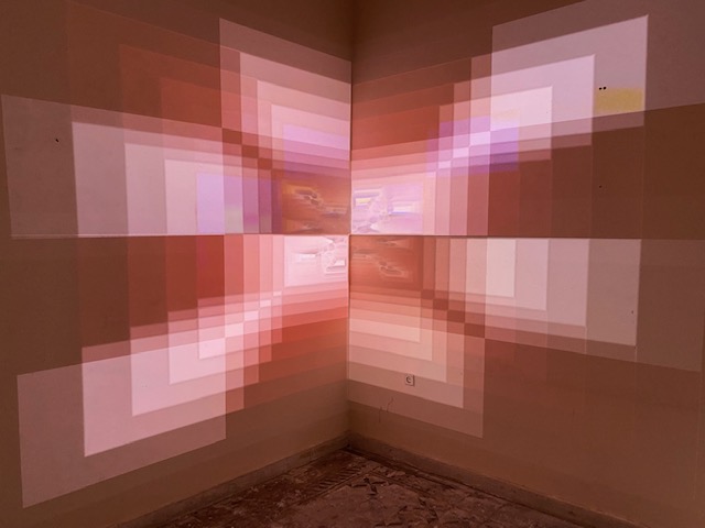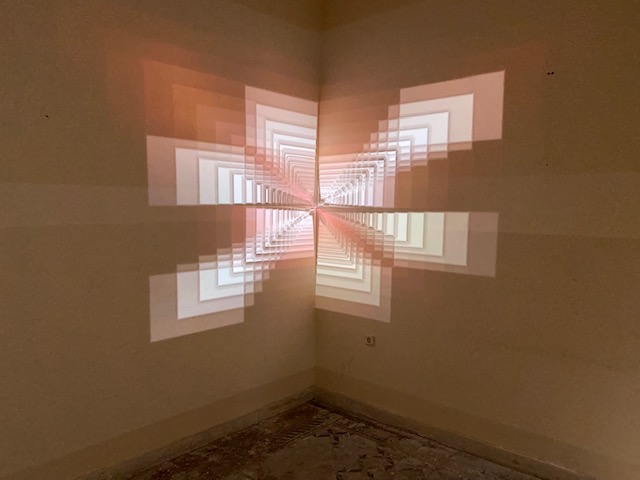Einige wenige Künstler und Werke nur der Ausstellung „Back in Athens“ habe ich in fünf Einzelbeiträgen gezeigt. Die Zahl der Aussteller – 165, so viel ich weiß – ist natürlich viel viel größer. Dennoch komme ich mit diesem 6. Eintrag zum Abschluss. Dieses Mal geht es um Kunst, die verschwindet, sobald man die Projektoren abschaltet. Materielose Kunst.