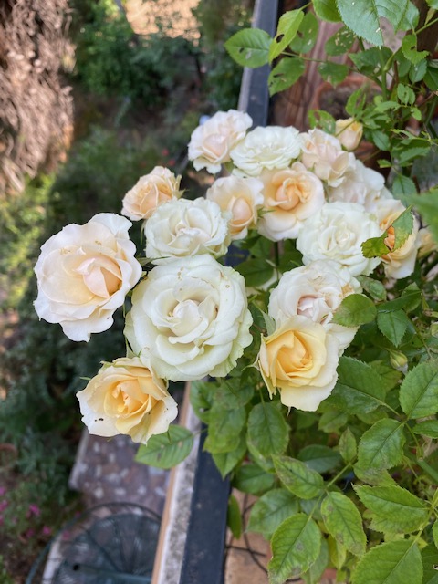 Und jetzt gehe ich mal auf den Balkon, an meiner Rose schnuppern. Es ist zwar nur eine armselige Lidl-Rose, doch blüht sie ununterbrochen und verströmt einen feinen Duft.