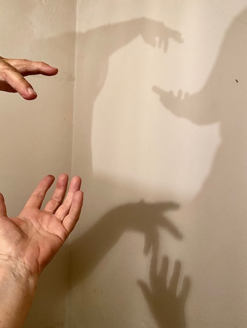 Und schon lasse ich meine Hände Schattenbilder an die leere Wand malen. „Komm, mach mit!“ bitte ich Slobodanka, und schon werden aus unseren zwei Händen …  o Wunder, vier Schattenhände, die über die Wand huschen: zwei zeigen sich in gehörigem Abstand zueinander oben, zwei andere, dunklere bilden sich weiter unten ab und berühren sich leicht wie, na du weißt schon, Michelangelo hat es gemalt.