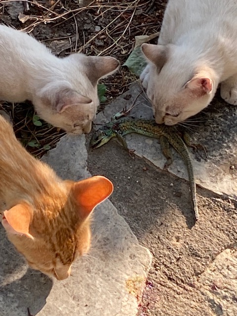 Heute haben die Katzen eine wunderschöne Echse ermordet. Ich sah das tote Tier, als die kleine Lin sich an ihr verköstigte.