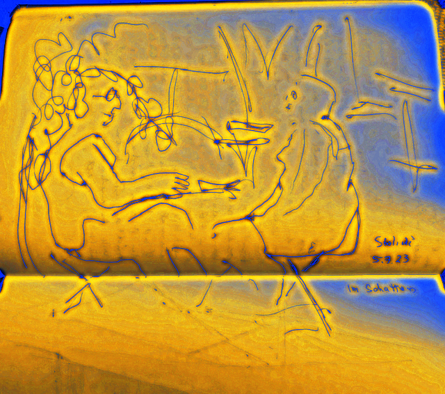 Mit Filter wirkt die Skizze der beiden Frauen sehr schön.
