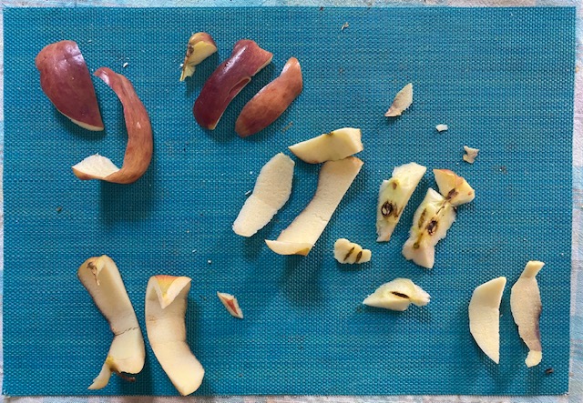 Adieu, du Apfel! Hast mich genährt und belehrt. Deine Schale trage ich nun auf den Komposthaufen.