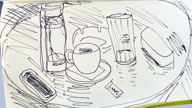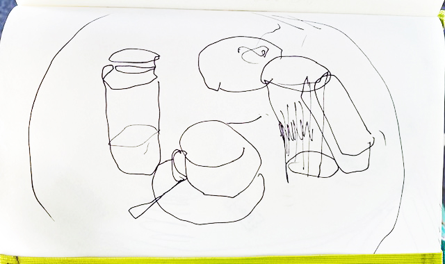 Mein Mut, Menschen heimlich zu zeichnen, war damit erschöpft. Daher wandte ich mich den Dingen auf meinem Tisch zu, zeichnete sie erst „blind“ …