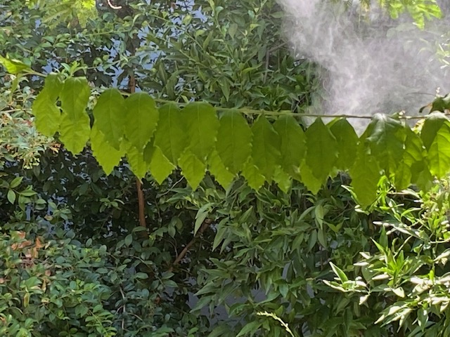 Gestern, im Gartenlokal sitzend, fielen mir nicht nur die wie auf einer Wäscheleine aufgereihten Blätter auf…