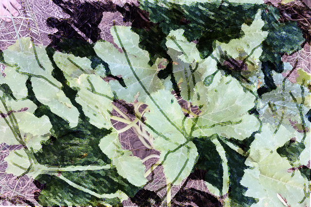 Das Zucchini zeichnete ich, indem ich die Blätter beiseite bog. Mühsam und wenig ergiebig.