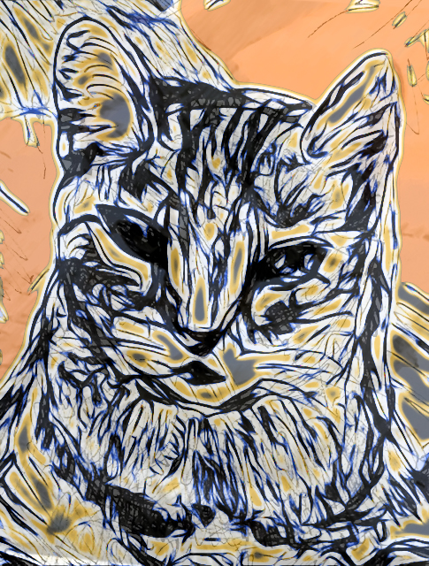 Das blau überblendete Foto/Skizze mit der ganzen Katze gefällt mir am besten.