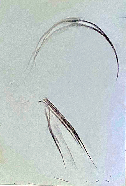 Wie ich so über das Eisen nachdenke, fährt mein Kohlestift über das Papier. Die entstehende Zeichnung scheint mir das Thema besser zu erfassen, als wenn ich den Eisenstuhl gezeichnet hätte.