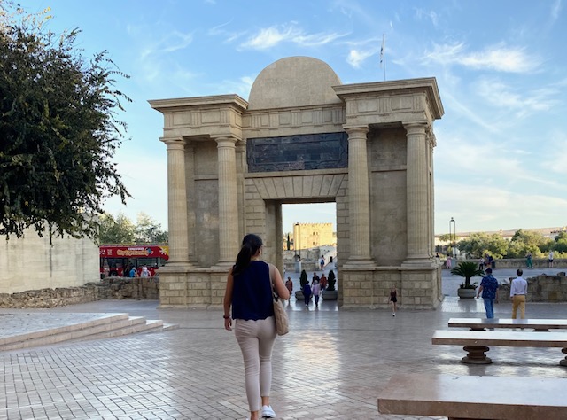 Sehr römisch kommt der „Triumphbogen“ von Cordoba daher. Er ist freilich nicht römisch, sondern wurde erst zu Beginn des 16. Jahrhunderts von König Philipp II. erbaut, in dessen Reich die Sonne nicht unterging und der die geraubten Schätze Südamerikas dafür verwendete, gegen den Protestantismus zu Felde zu ziehen. Da ich für derlei Triumphe wenig Sympathie habe, ist mir die Zeichnung ziemlich misslungen.