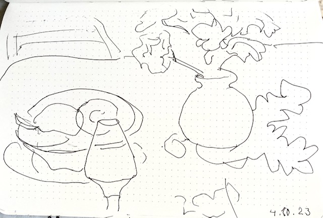 Tägliches Zeichnen: Skulptur in Sevilla, Architektonisches in Cadiz und Wieder-zu-Haus-Zeichnungen