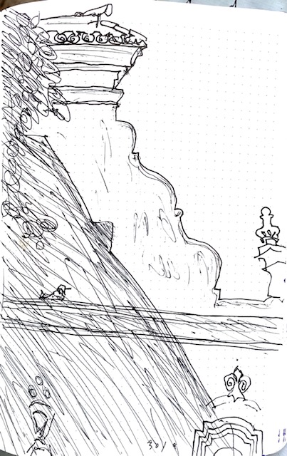 Tägliches Zeichnen: Skulptur in Sevilla, Architektonisches in Cadiz und Wieder-zu-Haus-Zeichnungen