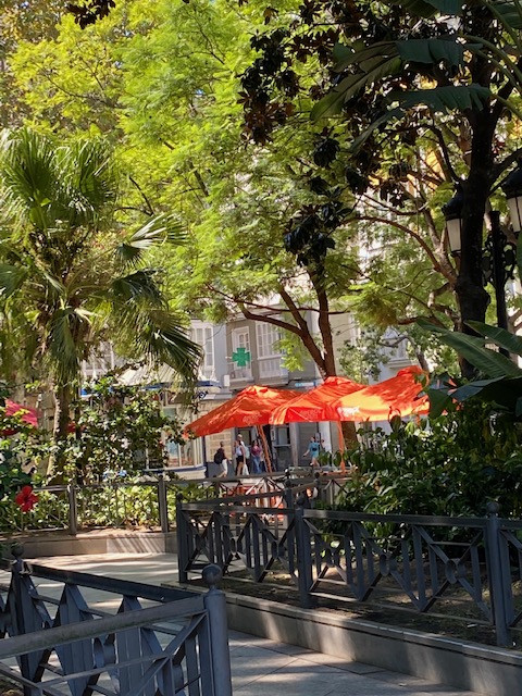 Andalusienreise (8) Ankommen in Cadiz: Hotel, Frühstückspark, Papgeien und Baumriesen