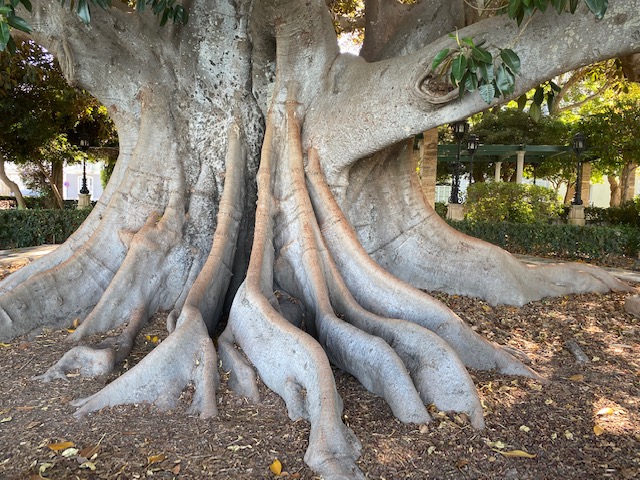 Andalusienreise (8) Ankommen in Cadiz: Hotel, Frühstückspark, Papgeien und Baumriesen
