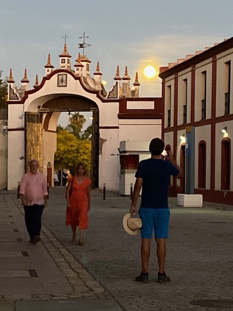 Wir stehen und staunen und können uns nicht sattsehen. Als wir endlich aufbrechen und uns dem Tor nähern, das uns in diese magische Welt lockte, geht der Vollmond auf, und uns uns entgegenkommendes Paar fragt, wo die Flamenco-Vorführung sei ….