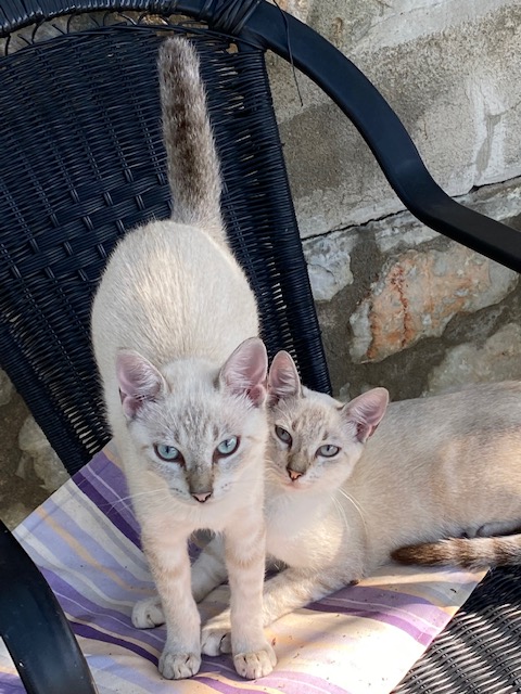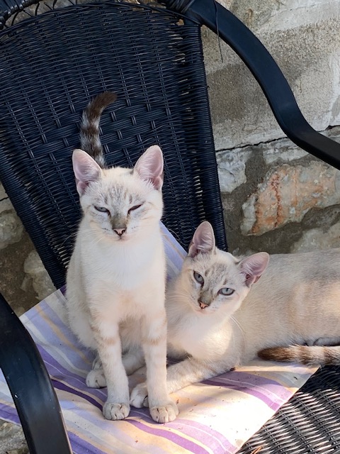 Die Kleinen nach Deutschland zu verfrachten, ist natürlich so ne Sache. Ich kenne inzwischen eine Frau, die das organisiert und verlässlich ist. Lieber wäre es mir allemal, für die eine und den anderen hier in der Gegend ein Zuhause zu finden. Dafür würde ich sogar meine beiden blauäugigen Super-Jungkater hergeben – schweren Herzens, aber doch. Der eine ist ganz zahm und schmuselig, der andere ist scheu geblieben.