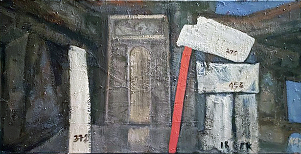 Heute war ein düsterer Tag, schließlich fielen sogar ein paar dicke Tropfen. Ich hatte in Kalamata zu tun und kam erst bei einfallender Dunkelheit dazu, meine Arbeit im Atelier fortzusetzen. Drum sind es heute nur 15 Bilder, die ich aus der Abseite herbeischleppen, fotografieren und einsortieren konnte.