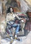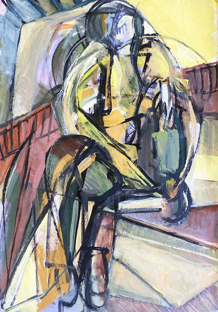 Das geometrisch abstrahierende Portrait, auf Pappe (50×70 cm), gehört ebenfalls zu den kleineren Formaten