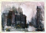 Nun aber zurück zur obigen Galerie: die finstere Stadtkulisse – mittelgroß, auf Pappe – ist ein öfter wieder kehrendes Motiv in meiner Malerei.