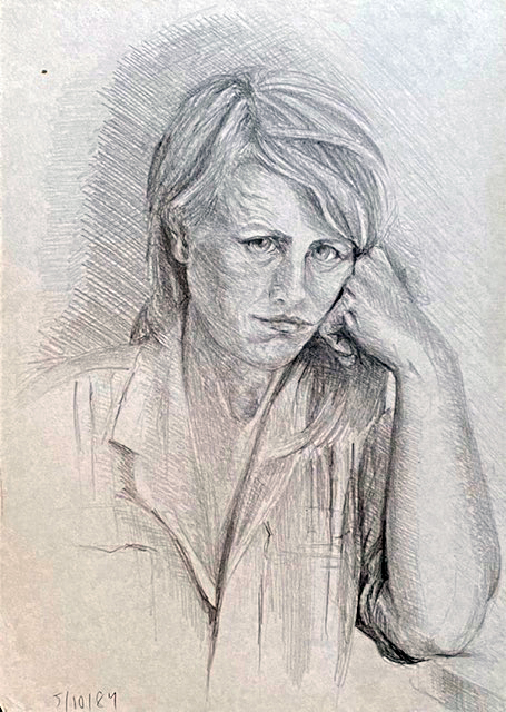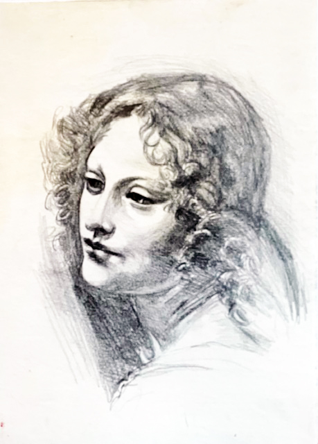 Die Bleistiftzeichnungen 36-38 sind die ältesten. Leonardos Engel habe ich vom Gemälde „Madonna in der Felsengrotte“ abgezeichnet. Es folgen Selbst und Mann, Beginn der 198oer Jahre.