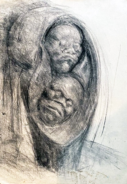 Die Kohlezeichnungen 40-45 : Selbst, Sohn, Freundin, Kind einer Freundin, später in den 80er Jahren.