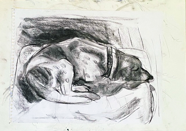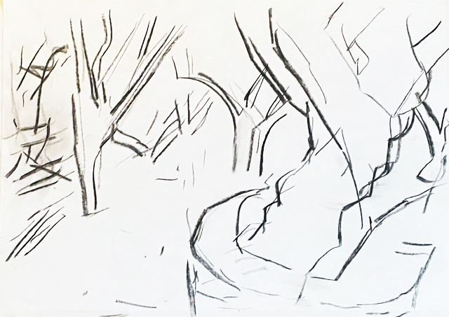 Die Kohlezeichnungen 58-66 stammen wieder von 2021 (gemeinsames Zeichnen).