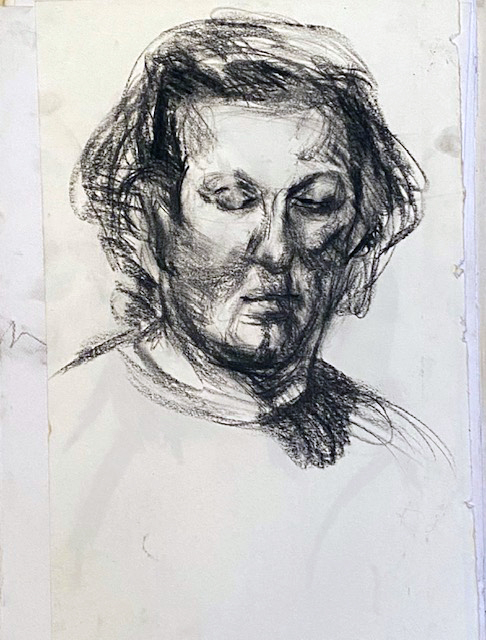 Die Kohlezeichnungen 46-57 sind 2021 entstanden, als ich Bekannte zum „gegenseitigen Portraitieren“ einlud, nicht zuletzt als Maßnahme gegen den Covid-Stress.
