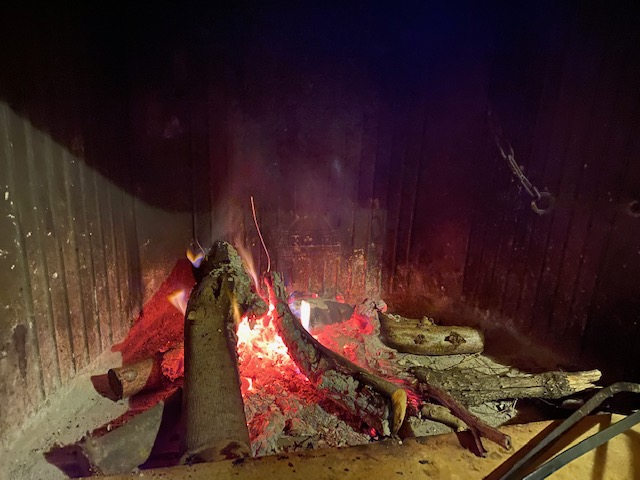 Am Abend jedoch kühlt es stark ab, und selbst mit dicken Socken und Pullover fange ich an zu frösteln. Also entzündete ich gestern das erste Mal in dieser Saison den Kamin. Vorjähriges Schnittholz von den Oliven gibt es noch reichlich, Zeitungspapier auch (mein Mann ist immer noch täglicher Zeitungsleser), und schon brennt das Feuer lichterloh.
