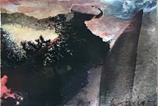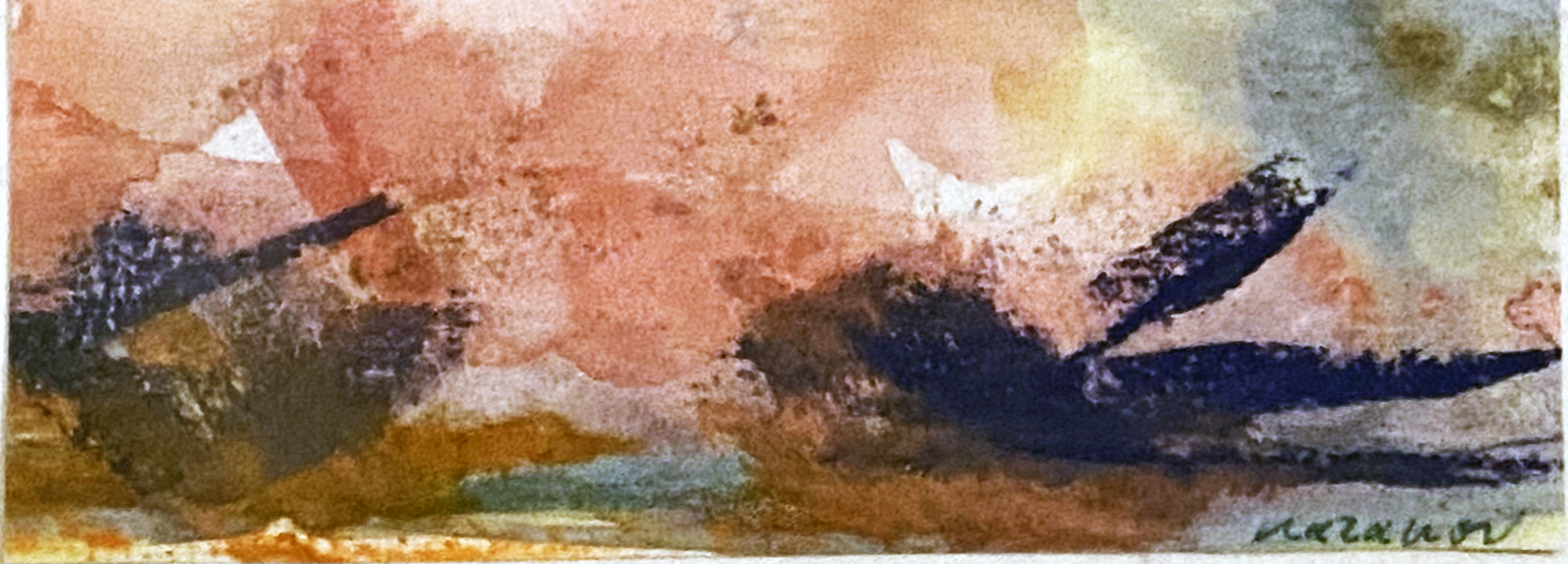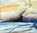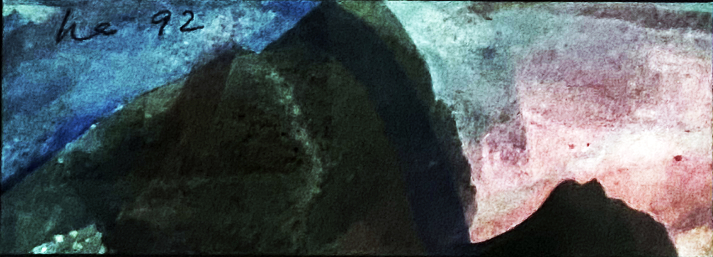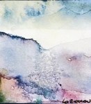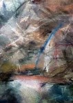 Dann wird die leichte wässrige Einfärbung des Papiers zum fernen Gebirge, zum tauenden Schnee- und Geröllfeld.