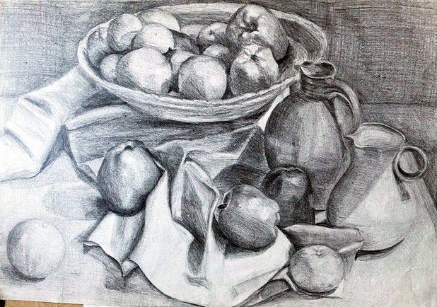Im Laufe der Zeit verwendete ich sehr verschiedene Bleistiftsorten – von harten bis sehr weichen. Auch Graphitstift kam vor. Manchmal ist es nach dem Foto schwer zu entscheiden, ob das Bild mit weichem Bleistift oder mit Kohle gezeichnet wurde. Nur am Original kann ich eindeutig feststellen, wo es hingehört.