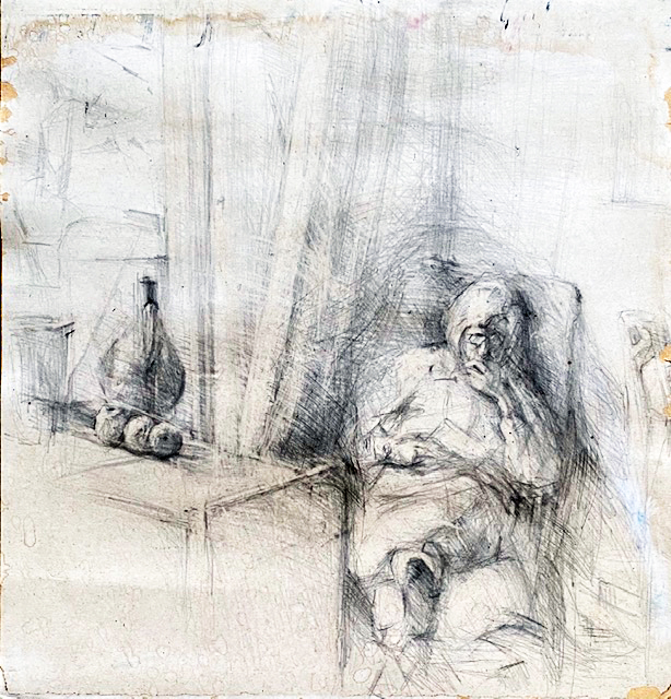 Eine andere Zeichnung zeigt meine Mutter, als ich sie zum letzten Mal in ihrer Wohnung besuchte.