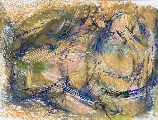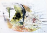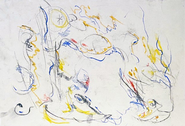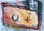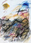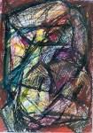 Die Zuordnung der Bilder ist nicht immer einfach. Und so zögere ich, ob ich diese Serie der Ölkreide oder den Klebestreifenbildern zuordnen soll. Ich möchte sie zusammen präsentieren, wenngleich das erste einer ganz anderen Zeit entstammt, nämlich dem Jahre 1984, während die anderen im August und September 2001 entstanden sind.