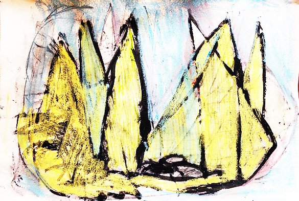 Eine ziemlich trübe Angelegenheit. Also griff ich zur gelben Kreide und heiterte die Szenerie auf.