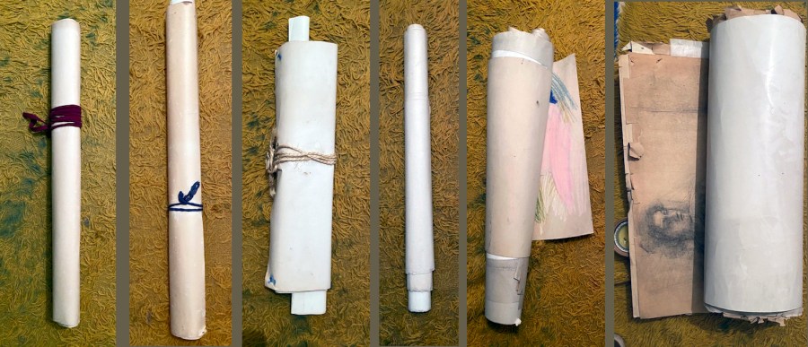 Bilder bewerten und ausrangieren: Regale, Papierrollen, Plakate, Ölkreide 38-40